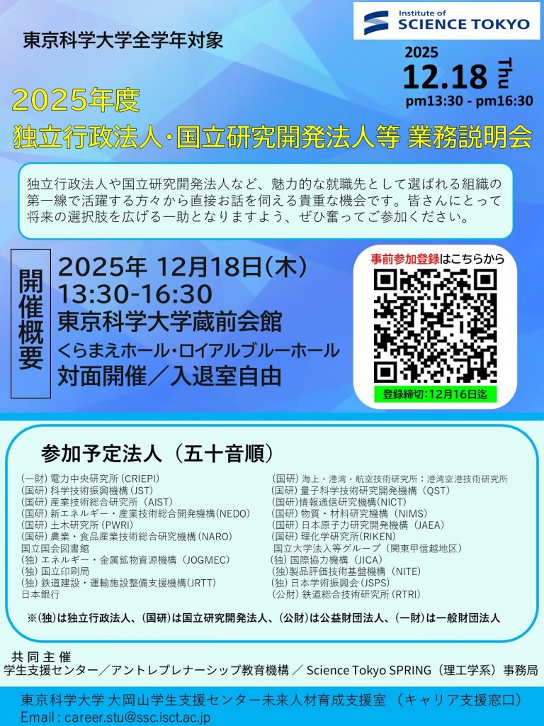 東京科学大の全学生を対象に、キャリアイベントを対面開催します。